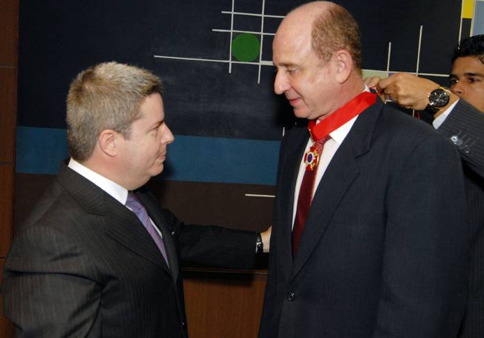 O governador Antonio Anastasia condecorou, nesta segunda-feira (6), no Palácio Tiradentes, o presidente do Tribunal de Contas da União (TCU), ministro Benjamim Zymler, com a Grande Medalha da Inconfidência. Agraciado este ano, o ministro não pôde comparecer à cerimônia, no último dia 21 de abril, em Ouro Preto.