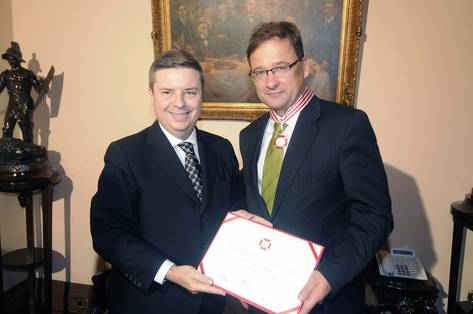 O embaixador não pôde comparecer à solenidade oficial em Diamantina, no Vale do Jequitinhonha, no dia 12 de setembro último. A entrega da medalha, nesta quarta-feira, coincidiu com o Dia Nacional da República Tcheca em Belo Horizonte.