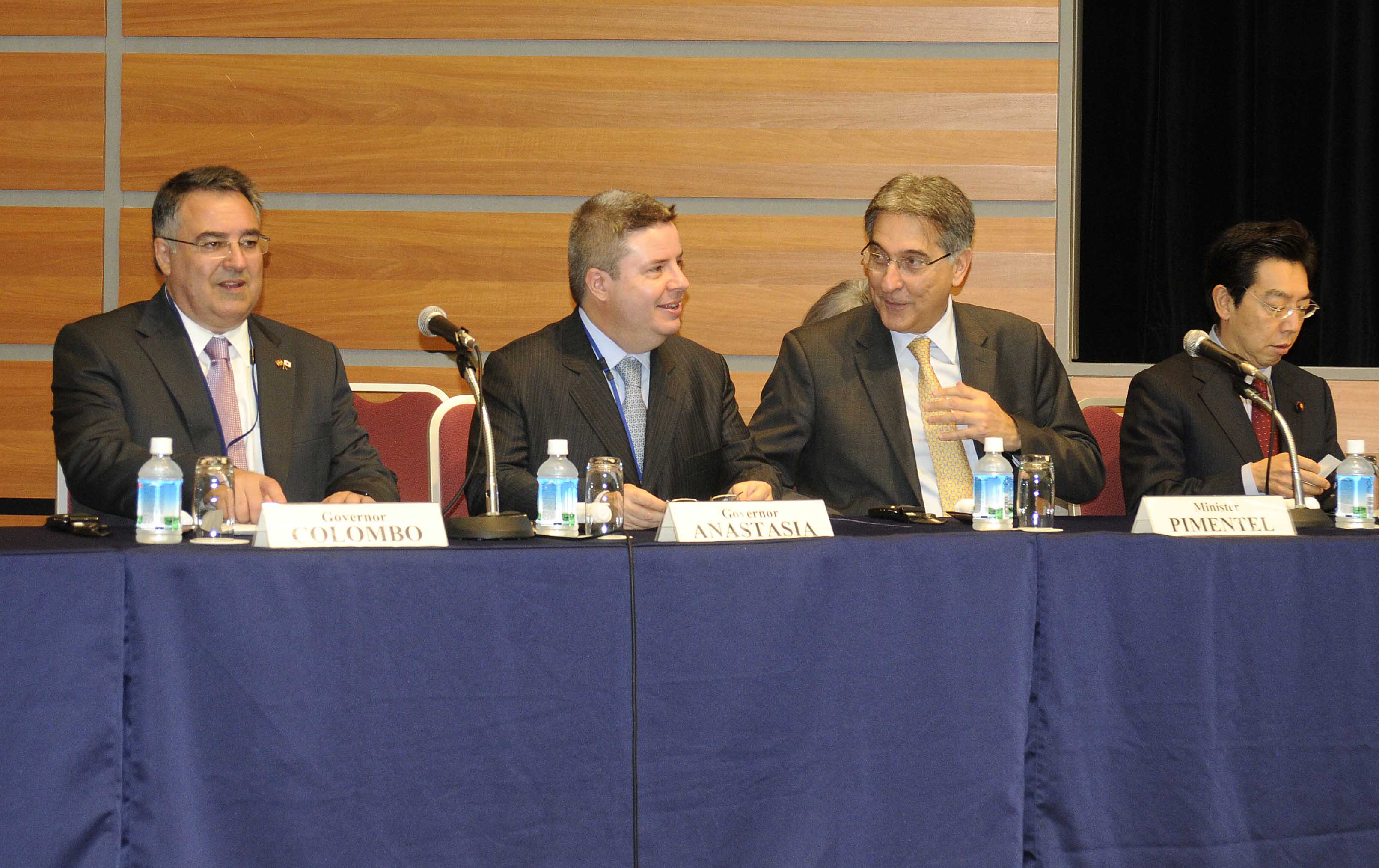 Da esquerda para a direita: Raimundo Colombo, governador de Santa Catarina, Antonio Anastasia, Fernando Pimentel, ministro do Desenvolvimento, Indústria e Comércio Exterior, e Yosuke Kondo, vice-ministro da Economia e Comércio do Japão