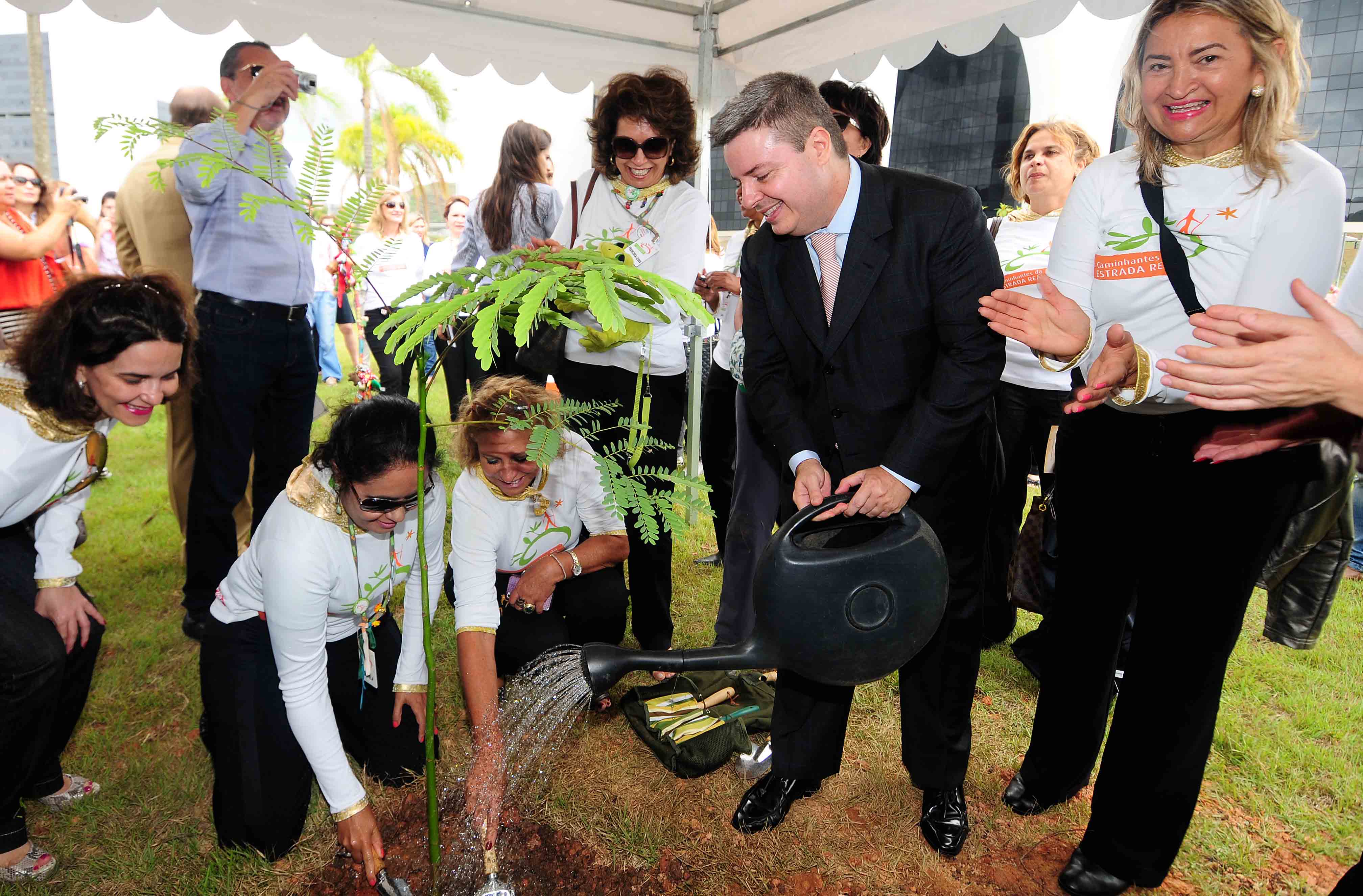 O governador Antonio Anastasia entregou nesta terça-feira (13), no Palácio Tiradentes, na Cidade Administrativa, o título de Embaixadoras da Estrada Real a 71 integrantes da Associação Caminhantes da Estrada Real e uma placa à presidente da entidade, Maria Elvira Salles Ferreira. Na oportunidade, foram plantadas 30 mudas de árvores das espécies guapuruvu, pequi e paineira ou barriguda.