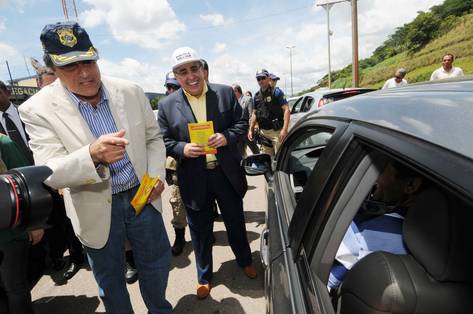 Ao lado do ministro da Justiça, José Eduardo Cardozo, Alberto Pinto Coelho participou da mobilização com os condutores de veículos que trafegavam na BR 381, no Posto da Polícia Rodoviária Federal. Além de distribuírem panfletos educativos, o ministro e o governador em exercício conversaram com os motoristas e falaram sobre o Rodovida. Para Alberto Pinto Coelho, a iniciativa se somará às outras ações do Governo de Minas que visam à redução dos acidentes e mortes no trânsito.