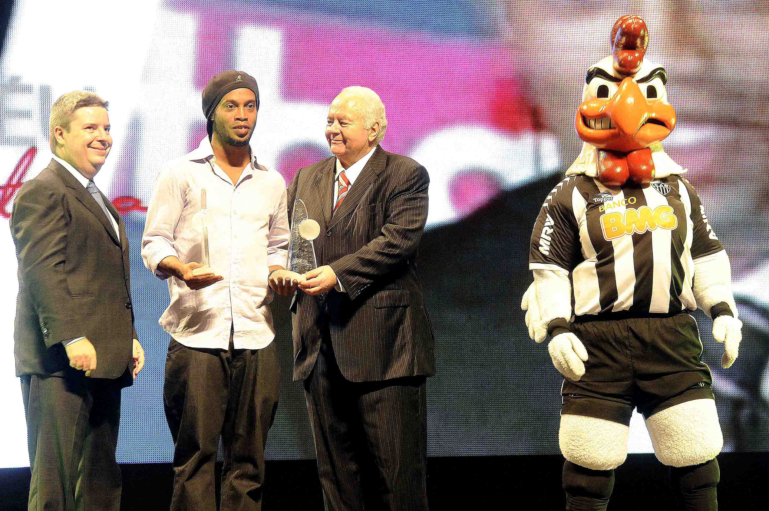 Antonio Anastasia, juntamente com o diretor-presidente dos Diários Associados, Álvaro Teixeira da Costa, entregou os troféus de Craque do Ano e Melhor Meio Campo ao jogador Ronaldinho Gaúcho, do Atlético. O governador destacou o momento do futebol mineiro.