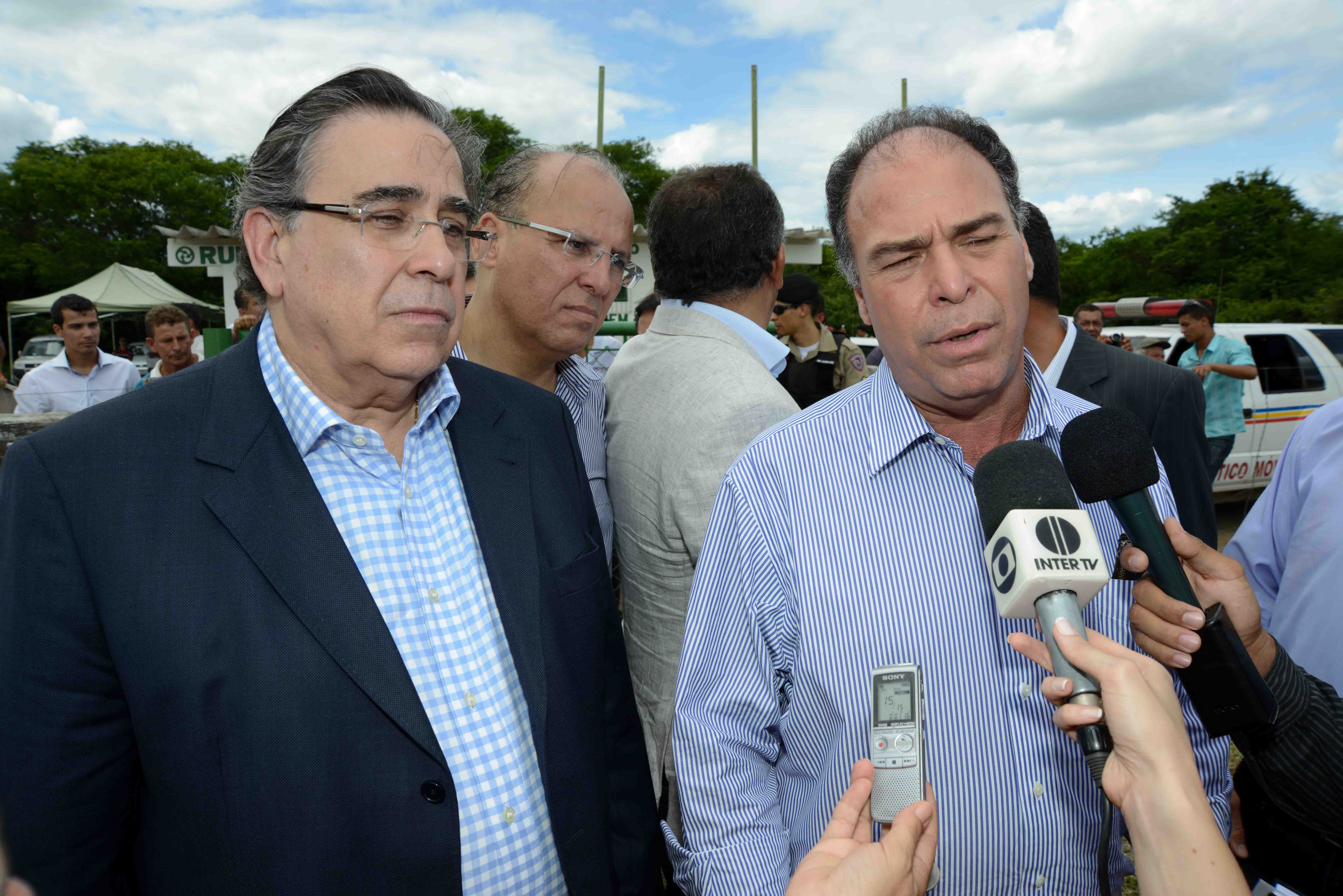 Alberto Pinto Coelho e Fernando Bezerra concedem entrevista durante a visita ao Jaíba