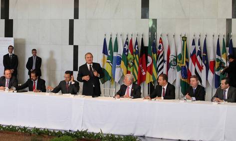 O governador Antonio Anastasia classificou como muito propositiva a reunião realizada nesta quarta-feira (13), no Salão Negro do Congresso, em Brasília, da qual participaram os presidentes da Câmara dos Deputados, Henrique Alves, e do Senado Federal, Renan Calheiros, outros 22 governadores e o colégio de líderes da Câmara e do Senado para discutir propostas para um novo pacto federativo. Foram definidos quatro pontos para ação imediata.