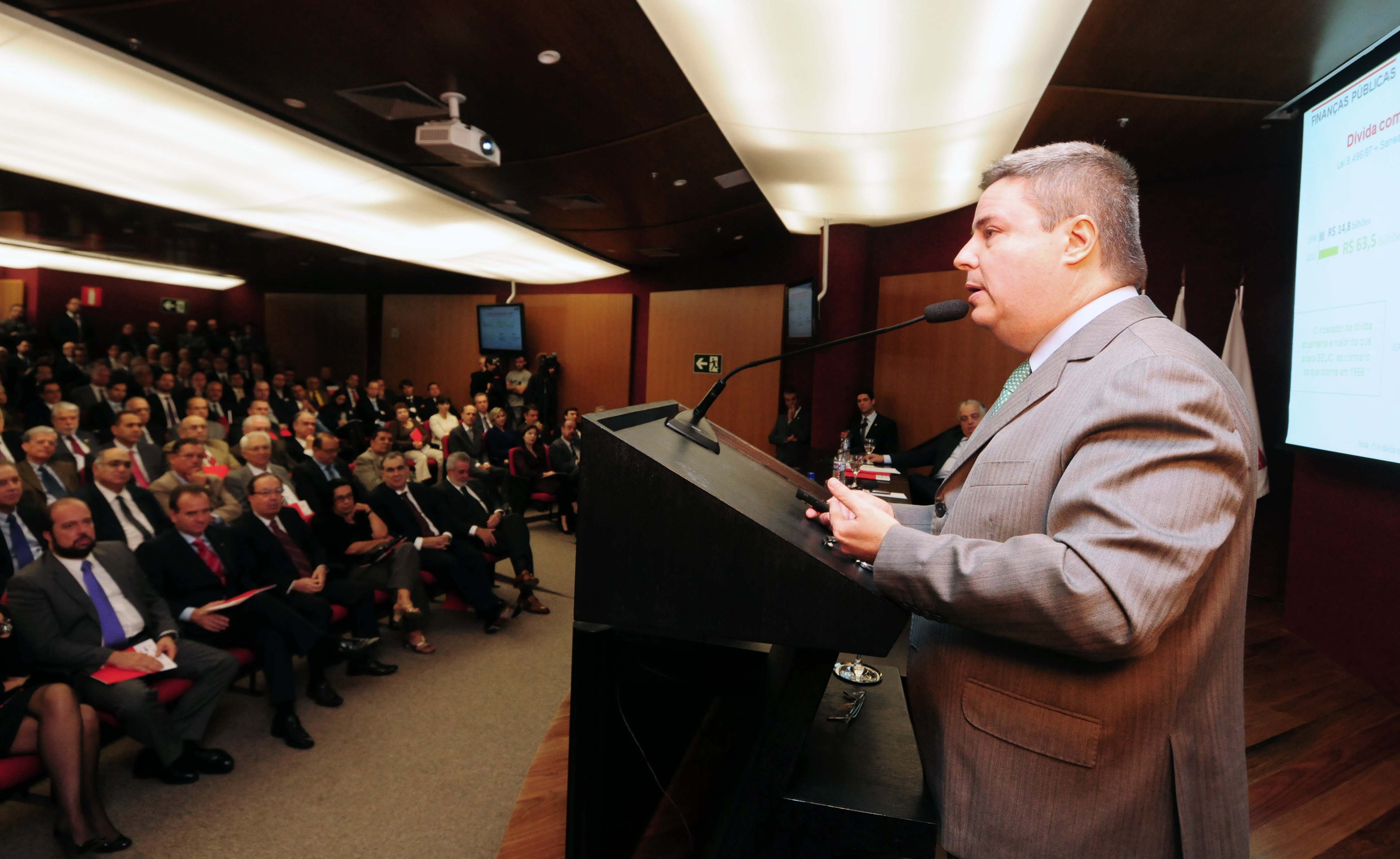 Antonio Anastasia apresentou nesta sexta-feira (17), na sede da Federação das Indústrias do Estado de Minas Gerais (Fiemg), com a palestra “Panorama da Economia Mineira”. É a primeira vez que os ganhos sociais e econômicos do Estado, registrados a partir de 2003 com o Choque de Gestão, foram apresentados ao público de maneira sistematizada. O evento integrou a programação dos 80 anos da Fiemg, comemorados em 2013.