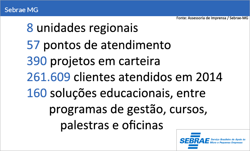 O Serviço de Apoio às Micro e Pequenas Empresas de Minas Gerais (Sebrae Minas) é uma entidade privada sem fins lucrativos. É um agente de capacitação e de promoção do desenvolvimento, criado para dar apoio aos pequenos negócios. Trabalha para estimular o empreendedorismo e possibilitar a competitividade e a sustentabilidade dos empreendimentos de micro e pequeno porte.