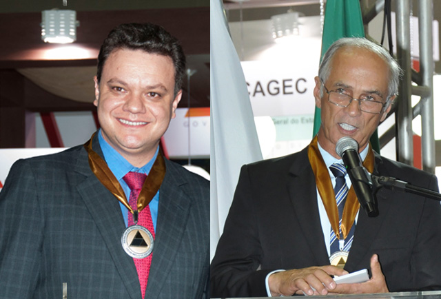 O vice-governador, Antônio Andrade, e o secretário de Estado de Governo, Odair Cunha, receberam nesta quarta-feira, 06/05, durante o 32º Congresso Mineiro de Municípios, a Medalha do Mérito Municipalista Celso Mello de Azevêdo. A homenagem é concedida pela Associação Mineira de Municípios (AMM) a entidades e personalidades que trabalham a favor dos municípios.