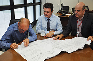 O secretário de Estado de Governo, Odair Cunha, o presidente da Companhia de Habitação de Minas Gerais (Cohab Minas), Alessandro Marques, e o prefeito de São Tomás de Aquino, José Carlos Pimenta, assinaram nessa terça-feira, 17/01, projeto urbanístico e arquitetônico para construção de 75 casas no município, localizado no Território Sudoeste.