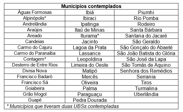 As cidades terão acesso a itens que garantem o funcionamento das equipes de saúde da família em 50 Unidades Básicas de Saúde
