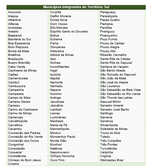 Entre outras ações no Território Sul, foram reformadas ou ampliadas 60 escolas da região e entregues 139 ônibus para transporte escolar. Na assistência à saúde, foi implantado, em janeiro de 2015, o Samu na Região Ampliada de Saúde Sul, com 36 ambulâncias básicas e dez UTIs móveis, para atendimento a 117 municípios do território, além de cofinanciamento para o SAMU de Poços de Caldas. Além disso, foram seis UTIs móveis e 23 ambulâncias básicas e R$ 68,14 milhões para atendimento ao setor. Outras 50 ambulâncias e 129 veículos para uso geral também foram entregues à população do Território Sul.