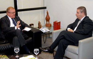 O governador em exercício Antonio Augusto Anastasia recebeu, nesta segunda-feira (8), o embaixador da Finlândia, Ilpo Manninen. Ele fez uma visita de cortesia ao governador acompanhado do cônsul da Finlândia em Belo Horizonte, Sidney Bueno Procópio, e o presidente da Agência Comercial Finpro, empresa finlandesa, Matti Landim.